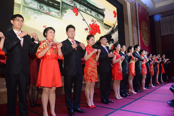 在紅豆,有著無數(shù)個(gè)這樣的故事等待我們挖掘。這些紅豆人因?yàn)榧t豆情文化而扎根企業(yè),從而也吸引更多的人選擇在紅豆扎根。紅豆是有形的情,在紅豆,每個(gè)員工都會感受到家庭溫暖。此次紅豆樹下的婚禮,紅豆為紅豆員工打造美輪美奐的婚禮,精心安排各種獨(dú)具紅豆特色的環(huán)節(jié)。鵲橋相會、恩愛宣誓、紅豆樹下鎖同心、新人共放荷花燈,紅豆情緣等等系列戶外儀式,演繹著新人相識相戀相愛的浪漫故事。紅豆集團(tuán)還為新人們送上紅豆緣定制首飾、定制旗袍、紅豆形象男裝等具有濃厚中國風(fēng)的新婚賀禮,共邀新人的親朋好友參加這場最浪漫的新中式集體婚禮,以紅豆之名見證最美的愛情。