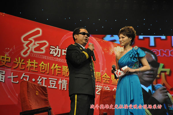 “江中有你的小溪,江中有我的河,江中有你人生的一段跋涉,在那激情演繹的歲月,你像陽光走進天地,走進我生活……”歌曲《江戀》的旋律剛一響起,整個劇場內(nèi)爆發(fā)出雷鳴般的掌聲?!斑@首歌是史光柱為歌頌愛情,為我們紅豆集團寫的歌?!崩钕壬贿吂恼?,一邊說道。如果沒有1984年的那場戰(zhàn)爭,這個世界將會少一位英雄;如果沒有那場戰(zhàn)爭,這個世界就會多一雙明亮的眼睛。史光柱,這個響亮的名字,在上個世紀八十年代感動和影響了整整一代人。戰(zhàn)傷后,他從雙目失明的陰影中走出,拿起筆桿,在文藝的陣地繼續(xù)攻關(guān)拔礙、沖鋒陷陣,譜寫了一首首紅色經(jīng)典和一個個史光柱傳奇。據(jù)悉,當天整場晚會共16首歌曲全部是由史光柱創(chuàng)作而成,其中《江戀》、《紅豆》和《青春木棉》三首歌曲是他專門為紅豆集團創(chuàng)作的?!笆氛?,這么多年來,究竟是什么力量讓您始終飽含創(chuàng)作的激情?”晚會上,主持人的問題代表了所有人心中的疑問?!白鎳⒋髳?、崇高的理想一直都在我心中,是它們激勵著我克服了重重困難,我想說的是,崇高讓我高尚,崇高讓我內(nèi)心充滿陽光?!笔饭庵幕卮鹨矛F(xiàn)場觀眾連連贊嘆,將晚會推向了一個小高潮。男生獨唱、女生獨唱、男女對唱、歌伴舞,一首首紅色經(jīng)典不僅激發(fā)起觀眾們對于愛情的美好聯(lián)想,而且引起了他們對故鄉(xiāng)、祖國的思念。
