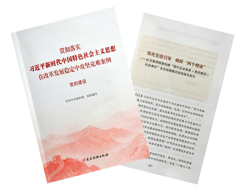 據(jù)新華社北京7月22日報(bào)道,中央組織部組織編選的“貫徹落實(shí)習(xí)近平新時(shí)代中國特色社會主義思想、在改革發(fā)展穩(wěn)定中攻堅(jiān)克難案例”叢書,近日由黨建讀物出版社出版發(fā)行。紅豆集團(tuán)的黨建工作經(jīng)驗(yàn)光榮入選其中的《黨的建設(shè)》本,該書共選30個(gè)單位的案例,紅豆集團(tuán)是唯一的民營企業(yè)。