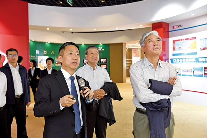 在紅豆黨建館,紅豆集團黨委書記、董事局主席兼CEO周海江介紹了紅豆創(chuàng)立的現(xiàn)代企業(yè)制度+企業(yè)黨建+社會責任“三位一體”的中國特色現(xiàn)代企業(yè)制度、主題教育開展、企業(yè)發(fā)展等情況。周海江說,企業(yè)健康發(fā)展、企業(yè)人士健康成長,這是黨和國家對民營企業(yè)的基本要求,也是廣大民營企業(yè)的內(nèi)在要求。紅豆集團始終堅持黨建引領企業(yè)治理,將黨的政治優(yōu)勢轉(zhuǎn)化為企業(yè)發(fā)展優(yōu)勢,始終堅持“聽黨話、跟黨走,講正氣、走正道”,始終堅持“以人民為中心”的發(fā)展理念,不忘初心、牢記使命,致富鄉(xiāng)親、造福社會,實業(yè)報國、八方共贏。