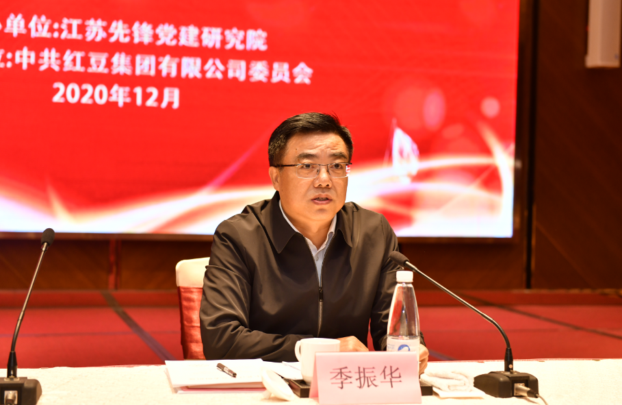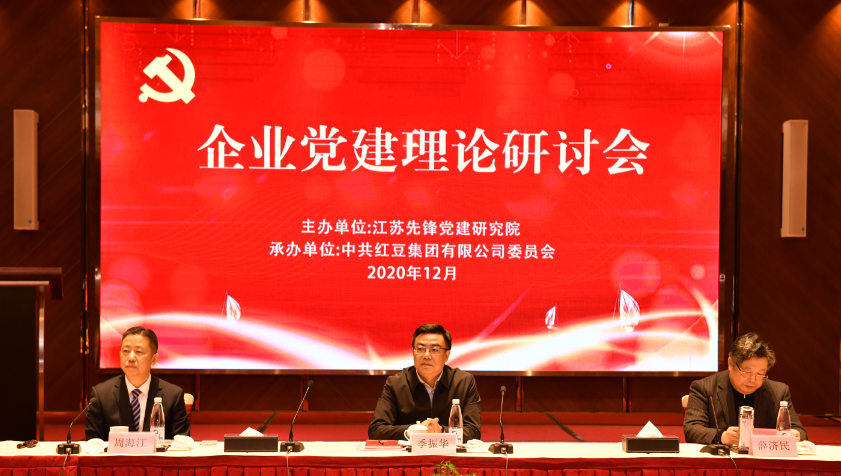 ? ? ? 為深入貫徹中共中央提出的構(gòu)建雙循環(huán)新發(fā)展格局和深化國有企業(yè)改革的指導方針,通過研究探討黨建工作經(jīng)驗以及不同所有制形態(tài)企業(yè)黨建工作的聯(lián)動互促機制,進而將黨建的政治優(yōu)勢轉(zhuǎn)化為發(fā)展優(yōu)勢,共促中國經(jīng)濟發(fā)展,12月30日,由江蘇先鋒黨建研究院組織的“企業(yè)黨建理論研討會”在省黨支部書記學院民企分院(紅豆集團)召開。江蘇省委“兩新”工委副書記季振華出席研討會并致辭,江蘇先鋒黨建研究院理事長、江蘇省律師協(xié)會會長、黨委副書記薛濟民出席,江蘇先鋒黨建研究院副理事長、紅豆集團黨委書記周海江作會議開幕致辭并作主題發(fā)言,江蘇先鋒黨建研究院院長倪春主持會議開幕式。